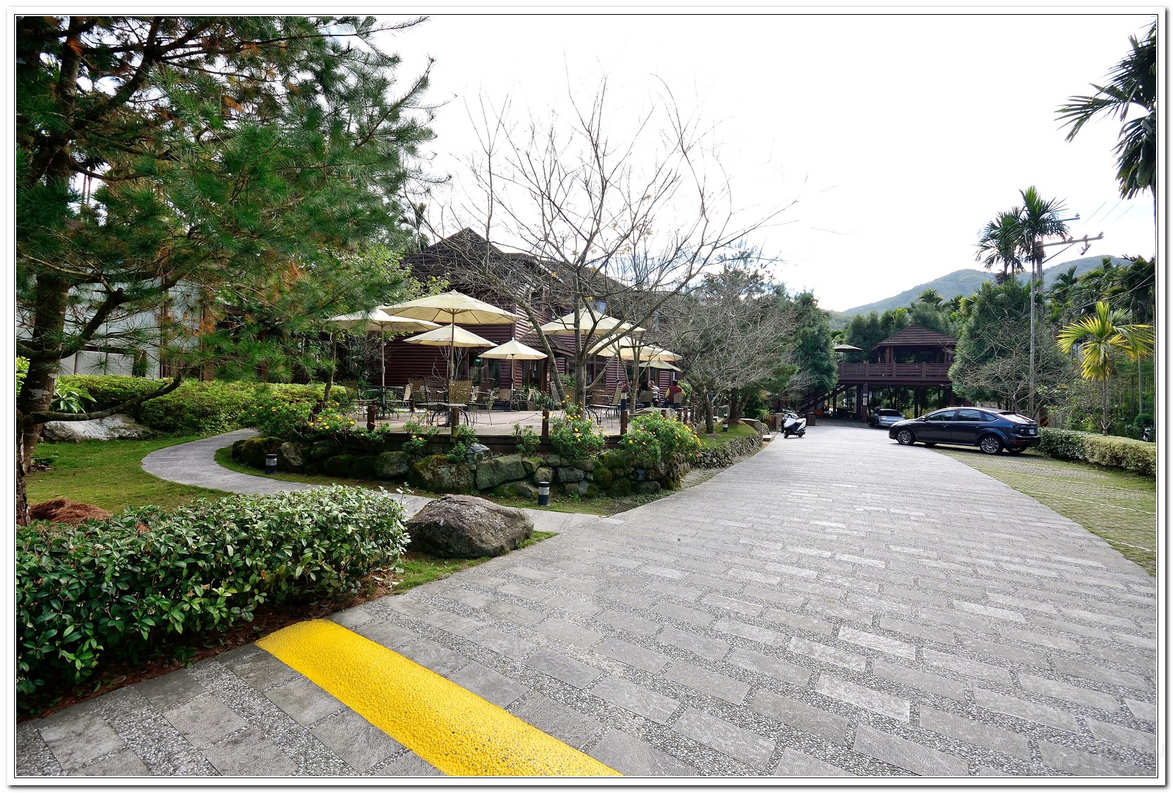 | 民宿停車場 | 充滿異國風味的咖啡廳 | 窗明几淨的用餐空間 | ||